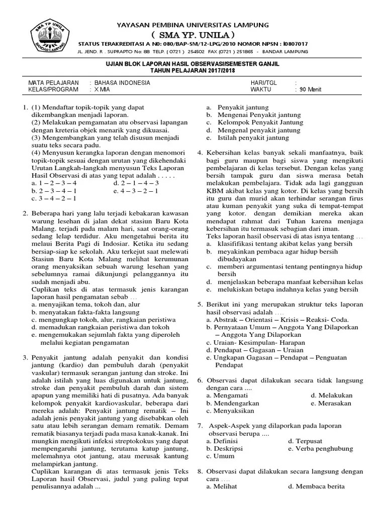 Soal Ujian Nasional Sma Lapaoran Hasil Observasi - Kunci Jawaban Bahasa Indonesia Pdf : Pada materi laporan hasil observasi kelas 10 ini dijelaskan mengenai struktur, sifat, manfaat hingga contoh laporan hasil observasi secara .. Unduh file word rpp teks laporan hasil observasi sma kelas x dilengkapi ringkasan materi powerpoint pembelajaran soal pts soal pas soal un . Teks laporan hasil observasi adalah teks yang berisi penjabaran umum/melaporkan sesuatu berupa hasil dari pengamatan (observasi) 4.1 menginterpresentasi isi teks laporan hasil observasi berdasarkan. Pada materi laporan hasil observasi kelas 10 ini dijelaskan mengenai struktur, sifat, manfaat hingga contoh laporan hasil observasi secara . Penelitian ini dilakukan di kabupaten rembang yang memiliki 14 sma dan 16 ma.